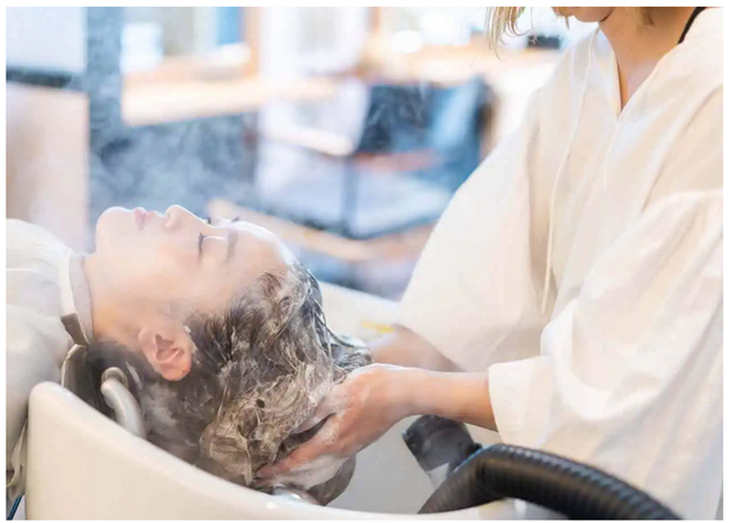 多くのサロンでのリアシャンプー時、ネープのすすぎ方が「×」。フロント、トップやサイドは手とシャワーで効率良くコシコシすすがれるけど、ネープのすすぎは体勢の関係で、頭部を持ち上げる手とシャワーを持つ手とで両手が要るので手でコシコシができず、時間を長目にシャワーを掛ける非効率なすすぎ方のサロンがほとんど。中には本当に洗い足りないサロンも少なくない。